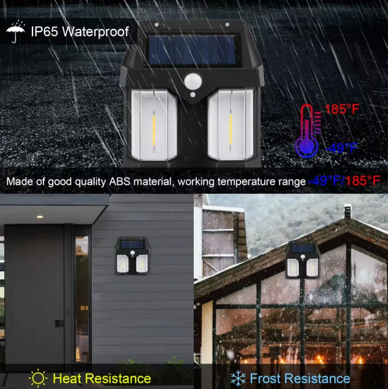 Weather Resistant: The outdoor solar wall light boasts a simple yet durable design, crafted from high-quality, eco-friendly plastic. This solar LED wall light is waterproof and can endure rain, snow, and other extreme weather conditions, ensuring reliable performance in any climate.